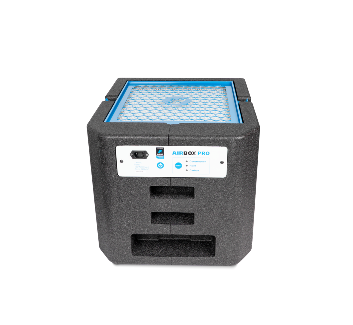 De Aircleaner AIRBOX Pro is speciaal ontwikkeld voor de bouwsector en de professionele schilder. De AIRBOX Pro reduceert effectief stof in de werkruimte en helpt voorkomen dat stofoverlast zich verplaatst naar andere ruimtes.
